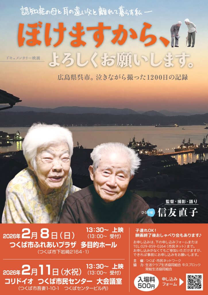 つくば・市民ネットワーク高齢福祉部会が企画した上映会です。ぜひ、ご都合に合わせてご参加ください。